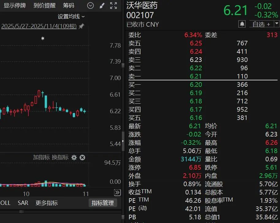 2025年前三季度,沃华医药实现营业收入6.25亿元,同比增长8.31%;实现归母净利润6399.5万元,同比增长179.34%;基本每股收益0.11元。其中,第三季度,公司实现营业收入1.99亿元,同比增长9.77%;归母净利润1931.86万元,同比增长63.33%。